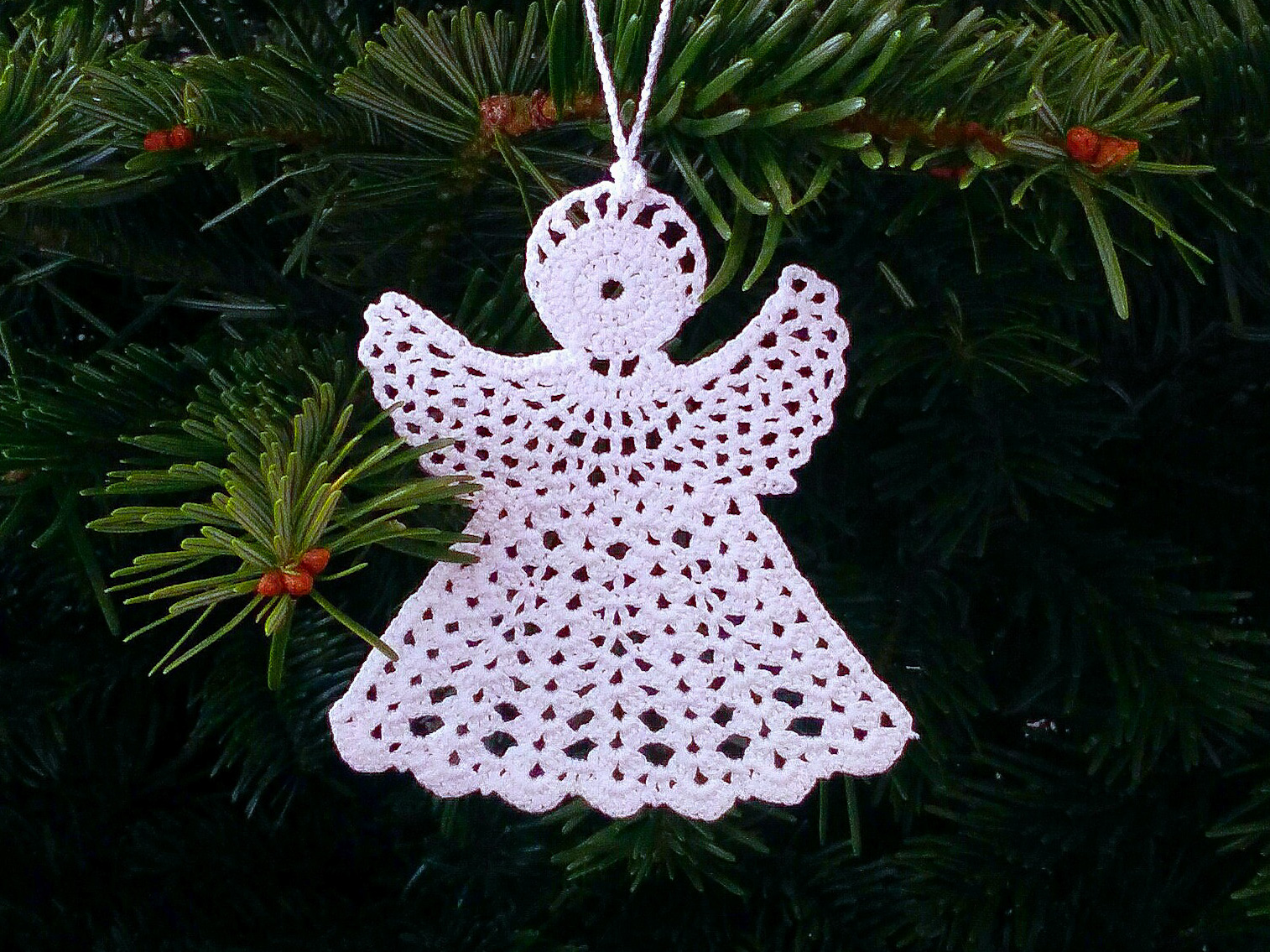 Joli ange au crochet. Coton blanc apprêté.